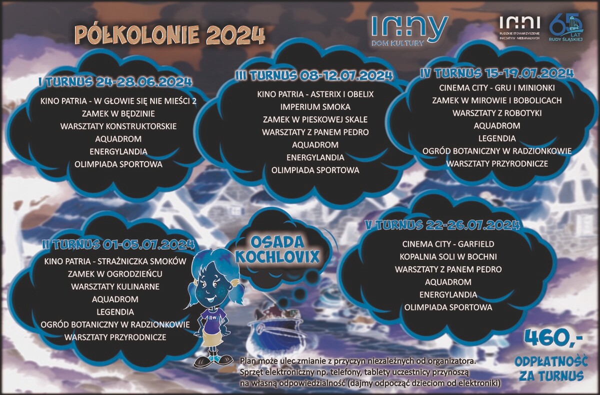 W tym roku przeniesiemy się do krainy Asterixa i Obelixa. W każdym turnusie będziemy wybierać się w ciekawe miejsca, poznawać nowe koleżanki i kolegów, a co najważniejsze aktywnie spędzać czas wolny. Do skorzystania z propozycji zapraszamy 258 młodych mieszkańców Rudy Śląskiej w wieku 6-13 lat, w następujących terminach: