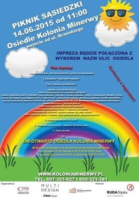 14 czerwca 2015 odbędzie się Piknik Sąsiedzki Kolonia Minerwy Ruda Śląska.