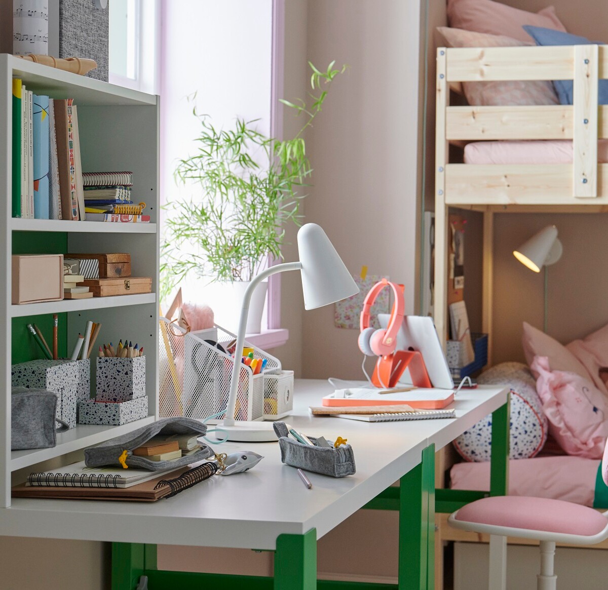 Dobrym pomysłem może być również wydzielenie osobnej strefy do przechowywania, a jeśli wystarczy miejsca – może nawet osobnej garderoby. Nawet jeśli teraz jeszcze nie jest to tak ważne, w ciągu najbliższych paru lat twoje dziecko będzie intensywnie poszukiwało własnej tożsamości. Przyda się jeden z regałów dla dzieci IKEA, duża szafa z wieszakami, organizerami i pudełkami na drobiazgi. Niezbędne będzie również duże lustro.