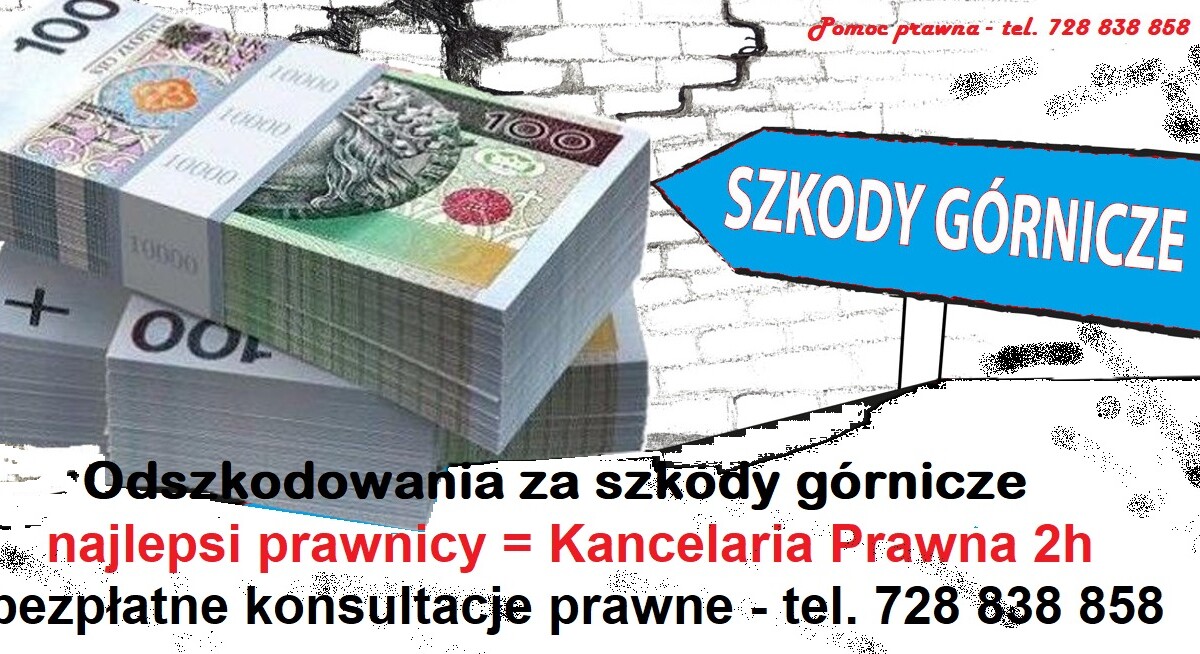 Od wielu lat na terenie całego rejonu Śląskiego działa kancelaria prawna specjalizująca się w odszkodowaniach za szkody górnicze. Kancelaria Prawna 24h to zespół 20 wybitnych adwokatów i radców prawnych wygrywające nawet trudne procesy sądowe z kopalniami.